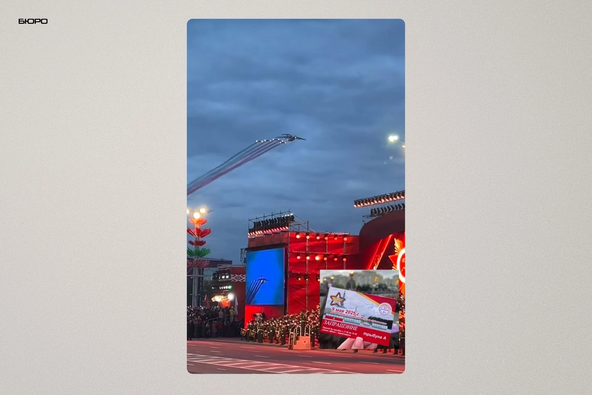 Вид Алии Короткой на парад в честь Дня Победы с трибуны А, а также приглашение на мероприятие, май – 2025. Источник: инстаграм-аккаунт Алии Короткой